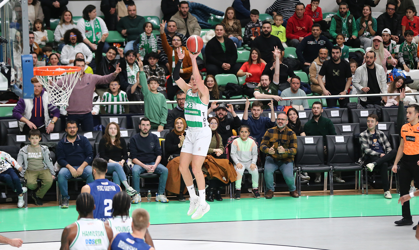 Türkiye Sigorta Basketbol Süper Ligi 19. haftasında Bursaspor İnfo Yatırım, sahasında Onvo Büyükçekmece Basketbol’u konuk etti. Nilüfer TOFAŞ Spor Salonu’nda oynanan karşılaşmaya David Michineau, David Mutaf, Anthony Brown, Michael Young, Jordan Hamilton beşiyle başlayan yeşil-beyazlılar, karşılaşmadaki ilk basketini Jordan Hamilton ile buldu.