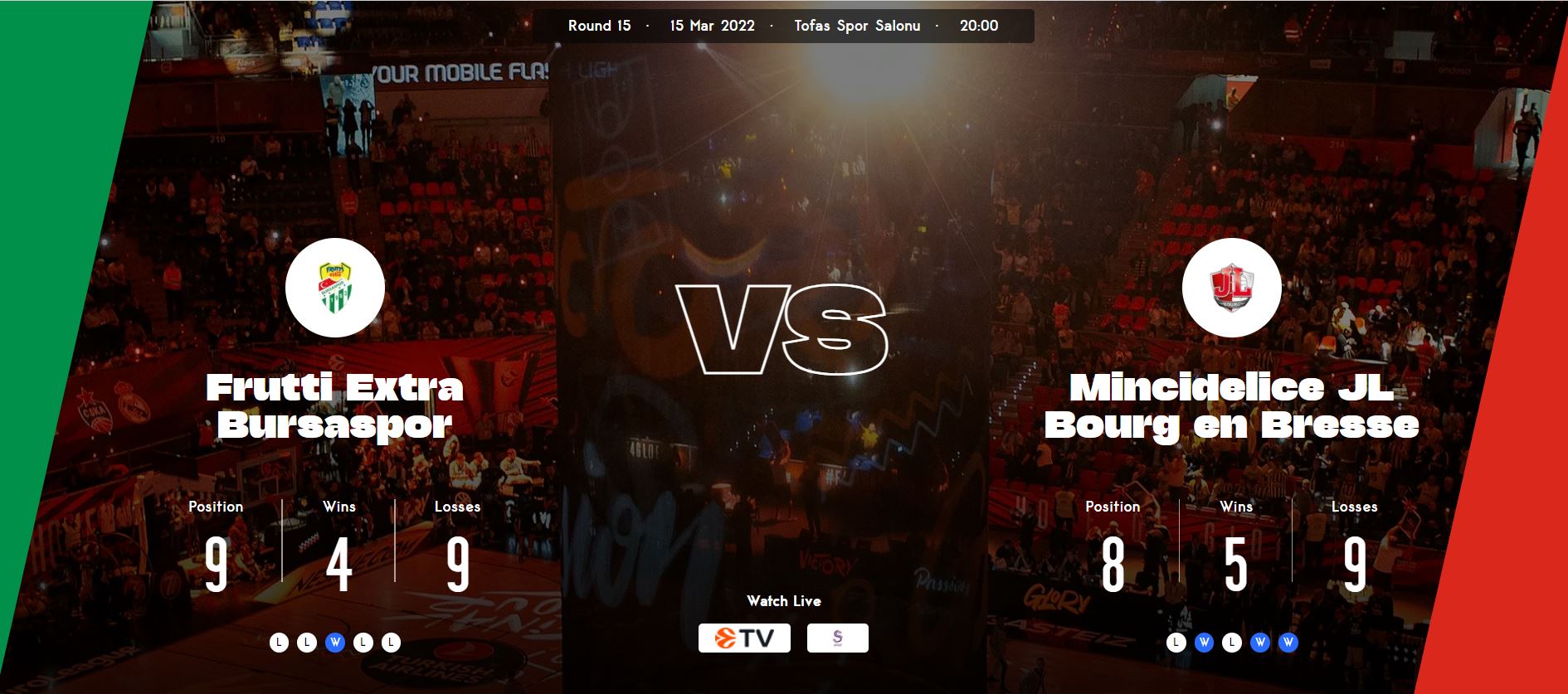 İlk sekiz takımın play-off‘lara kalacağı Eurocup‘ta Bursaspor maç eksiği ile dokuzuncu, ancak sekizinci Bourg‘dan 1 galibiyet geride bulunuyor. İki takım arasındaki ilk maçı 95-65 Bourg kazanmıştı.