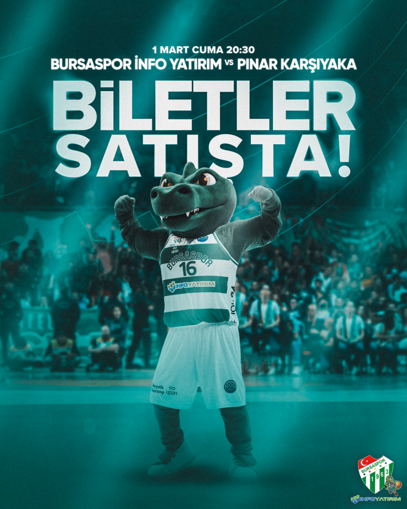 Bursaspor İnfo Yatırım’ın Türkiye Sigorta Basketbol Süper Ligi'nin 21. Haftasında sahasında oynayacağı Pınar Karşıyaka maçının biletleri satışa sunuldu.