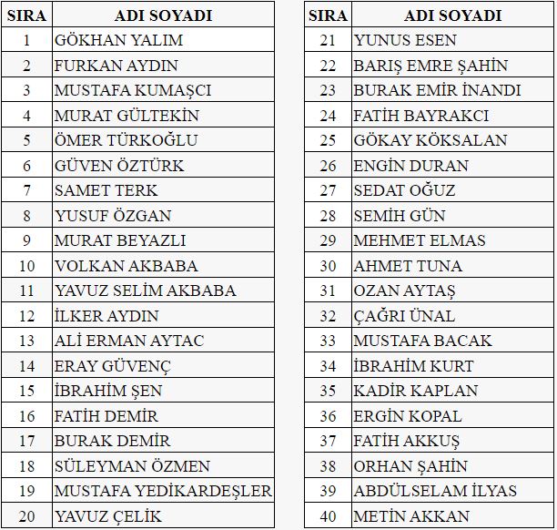 Tüzüğümüzün 9.1 maddesi gereği üyelik başvuru koşullarını yerine getiren 40 üye adayının isimleri belirlenmiştir.