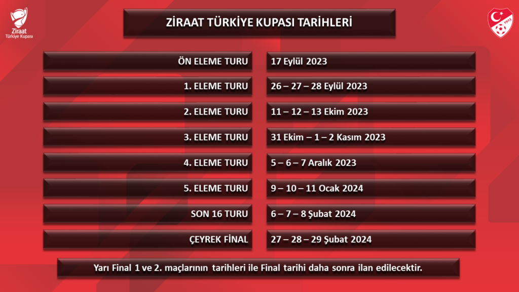 2023-2024 Sezonu Ziraat Türkiye Kupası tarihleri ve kulüplerin turlara göre katılım durumları açıklandı.