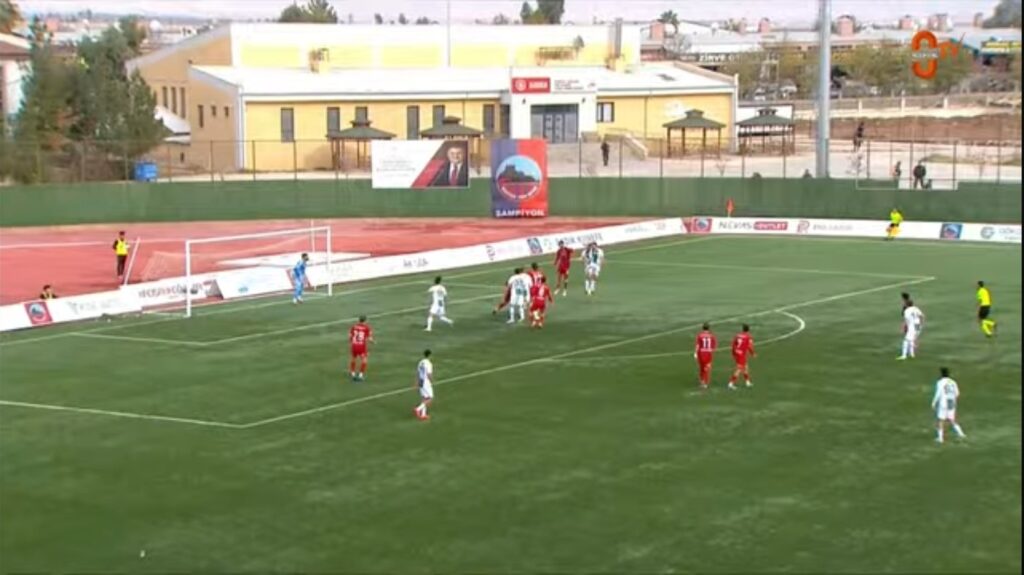 6’ İlhan Depe orta sahada rakibinden söküp aldığı topu defansın arkasına sarkan Ertuğrul İdris Furat‘a aktardı. İdris Furat ceza sahasına girmeden sert vurdu ancak top üstten dışarıya çıktı.