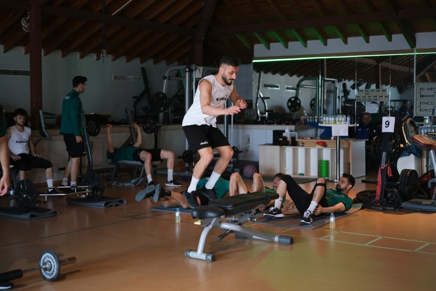 Bursaspor Teknik Direktörü İsmail Ertekin gözetiminde yapılan antrenmanda, takımımız “kuvvet çalışmaları” yaptı.