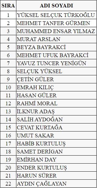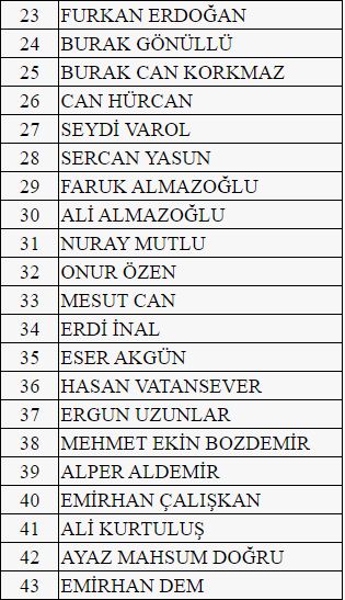 Tüzüğümüzün 9.1 maddesi gereği üyelik başvuru koşullarını yerine getiren 43 üye adayının isimleri belirlenmiştir.