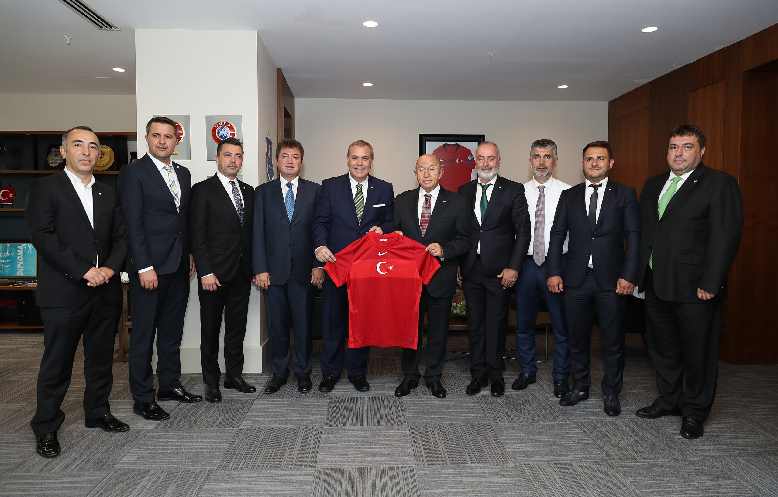 Ziyarette Özdemir, Bursaspor Başkanı Erkan Kamat ve Yönetim Kurulu Üyelerine A Milli Takım forması takdim etti.