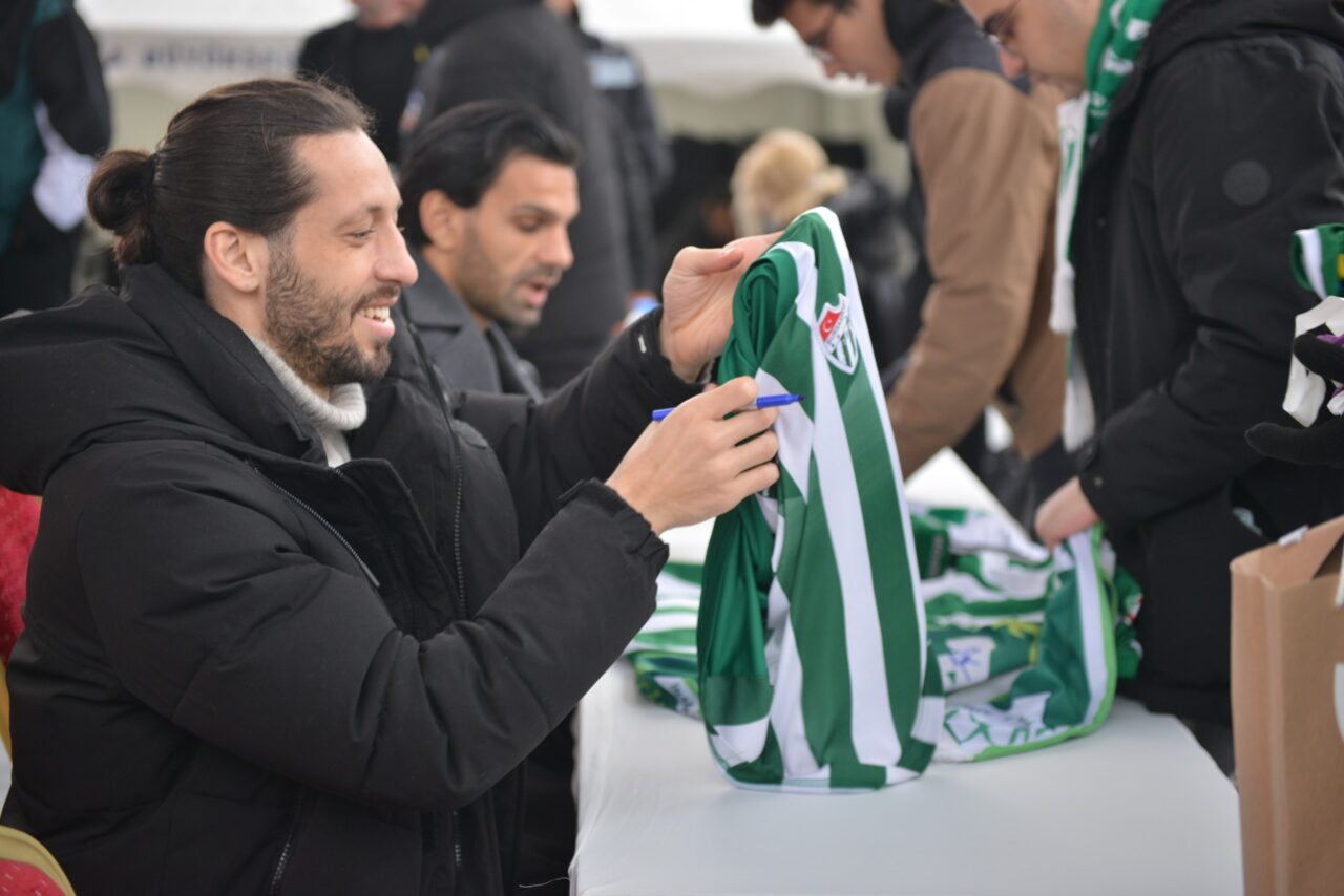 Öte yandan Bursaspor Başkanı Enes Çelik, Teknik Direktör Tahsin Tam ve futbolcular Taha Batuhan Yayıkçı, Muhammed Demir ve İlhan Depe de Yeni Yıl Meydanı’nda düzenlenen imza gününde taraftarlarla bir araya geldi.