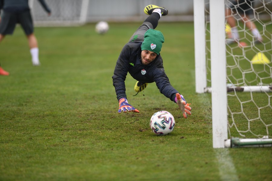 Bursaspor'un Ümraniyespor maçı hazırlıkları devam ederken takımın üç kalecisi de idmanda forma için kıyasıya çalışmaya devam etti.