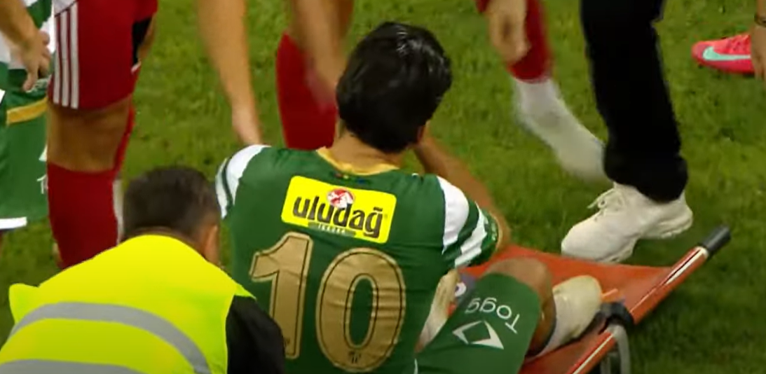 İlk 11’de sahaya çıkan tecrübeli futbolcu, bir pozisyon sonrası yerde kaldı ve sedye ile oyun alanını terk etti.