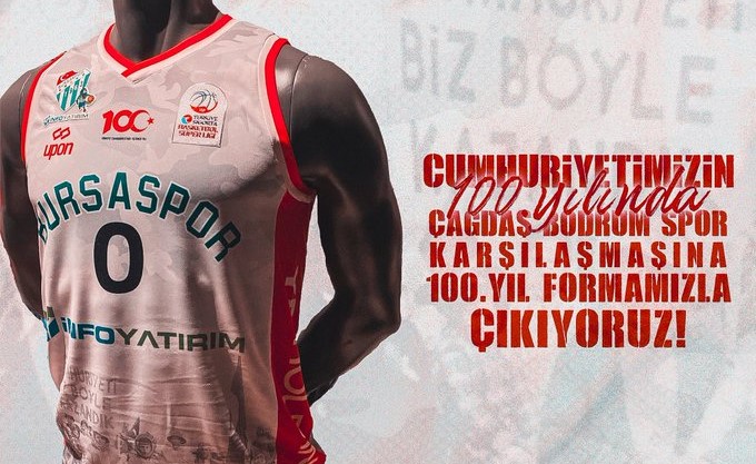 ” Cumhuriyetimizin 100. yılında, 29 Ekim‘de Çağdaş Bodrum Spor karşılaşmasına 100. yıl formamızla çıkıyoruz! 100. Yıl Hatıra Formamız yarın Tofaş Spor Salonu seyirci girişinde satışa sunulacaktır.