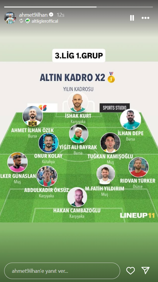 Sports Studio tarafından 3. Lig 1. Grubun altın kadrosunun seçildiği takımın görselini paylaşan Ahmet İlhan Özek aynı zamanda bu kadronun da kaptanı oldu.