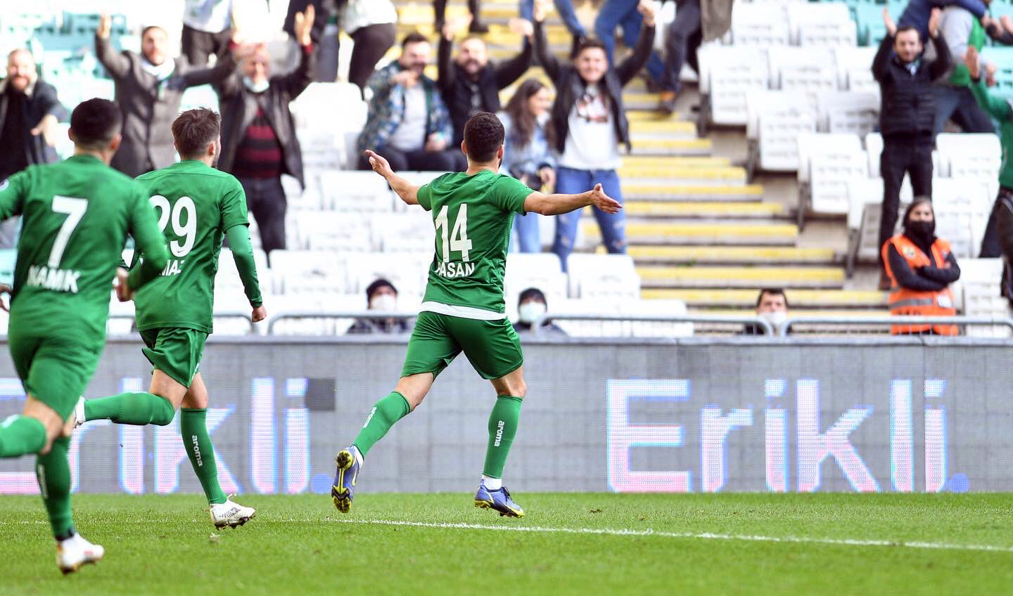 Dakika 28: GOOOOOOOOOOL HASAN AYAROĞLU… Bursaspor’un ani gelişen atağında Namık’ın pasıyla hareketlenen Hasan Ayaroğlu, defansı geçip düzgün bir vuruşla fileleri havalandırdı. (1-0)