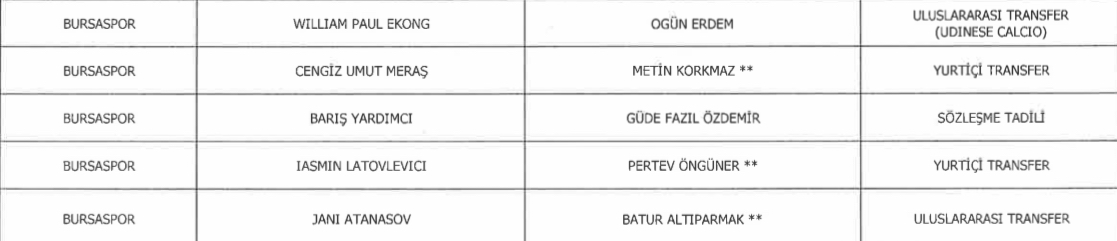 Federasyon tarafından açıklanan tabloya göre Bursaspor Kulübü transferler için menajerlere 376 Bin 370 Euro ve 1 Milyon 138 Bin 036 ₺ ödeme yaptı.