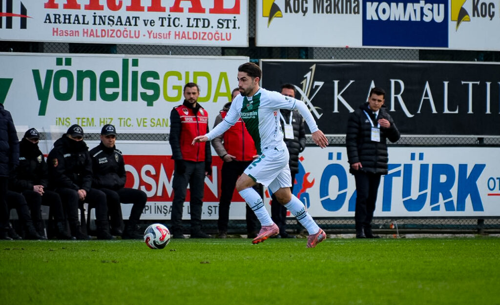 Maça iyi başlayan yeşil-beyazlı takımda 12 dakikada sakatlanan Baran Başyiğit‘in yerine Salih Kavrazlı oyuna dahil oldu. 23. dakikada Ertuğrul İdris Furat‘ın golü ofsayt sebebiyle geçerli sayılmadı. Ev sahibi ekip 27. dakikada Süleyman Güneş‘in golüyle 1-0 öne geçti. 17. dakikada ceza sahası içinde Halil Akbunar‘a yapılan müdahaleye Bursasporlu oyuncular penaltı beklerken hakem Yusuf Ziya Gündüz devam dedi.