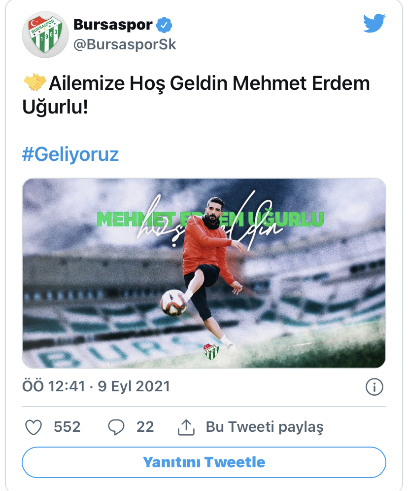 Bursaspor transferi sosyal medya hesabından duyurdu.