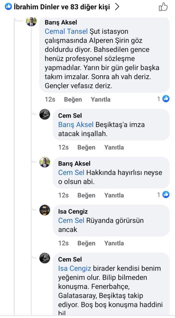 İzzet Taşkıran paylaşımında Bursasporlu genç bir futbolcunun ailesinin Beşiktaş ile sözleşme imzalamak için harekete geçtiğini ifade etti. Bu paylaşımın ardından bu oyuncunun Alperen Şirin olduğu belirtilirken Facebook hesaplarından yapılan yorumların olduğu bir fotoğraf ortaya çıktı.