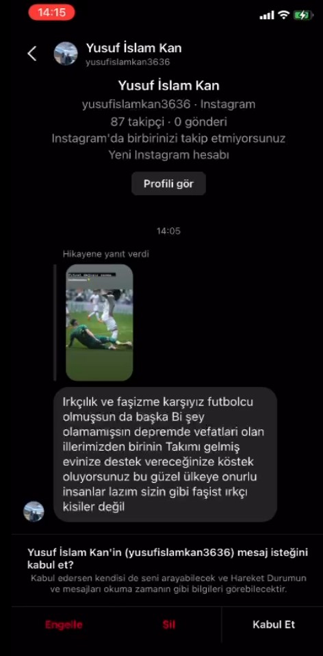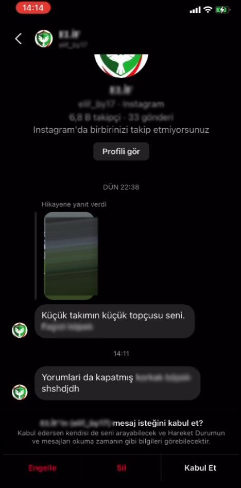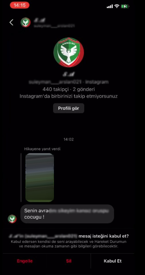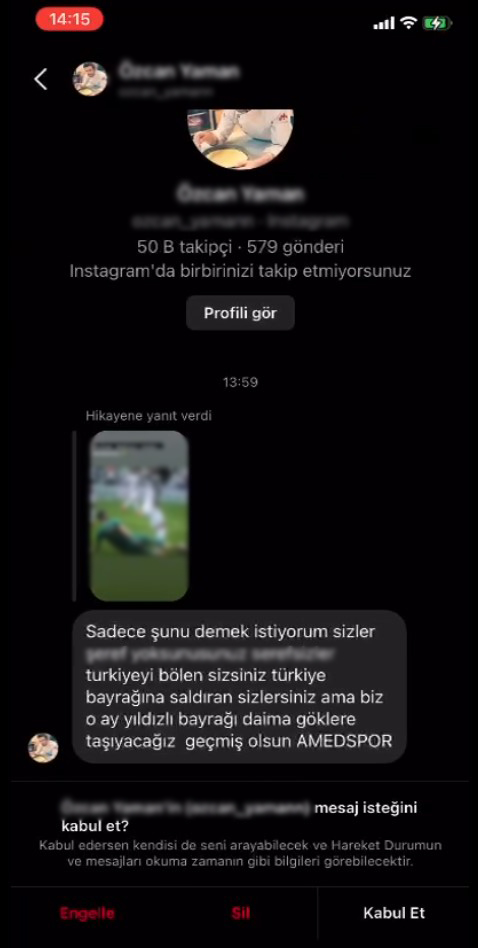 Bursasporlu futbolculara Amed SF taraftarı tarafından sosyal medya hesaplarından yapılan hakaret ve tehditler dikkat çekti.