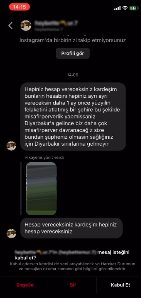 Bunları medyaya servis edin herkes görsün. İlk maçta yapılanları bilmiyorlar. Onlarıu hatırlatın. Futbolcumuzun üstüne bastılar, yaraladılar. Her türlü tehdit ve baskı yaptılar. Şimdi bir de haklı çıkmaya çalışıyorlar. Bu işin sağı solu olmaz arkadaşlar. Bu vatan hepimizin ama Amedspor kimin uşağı bellidir…