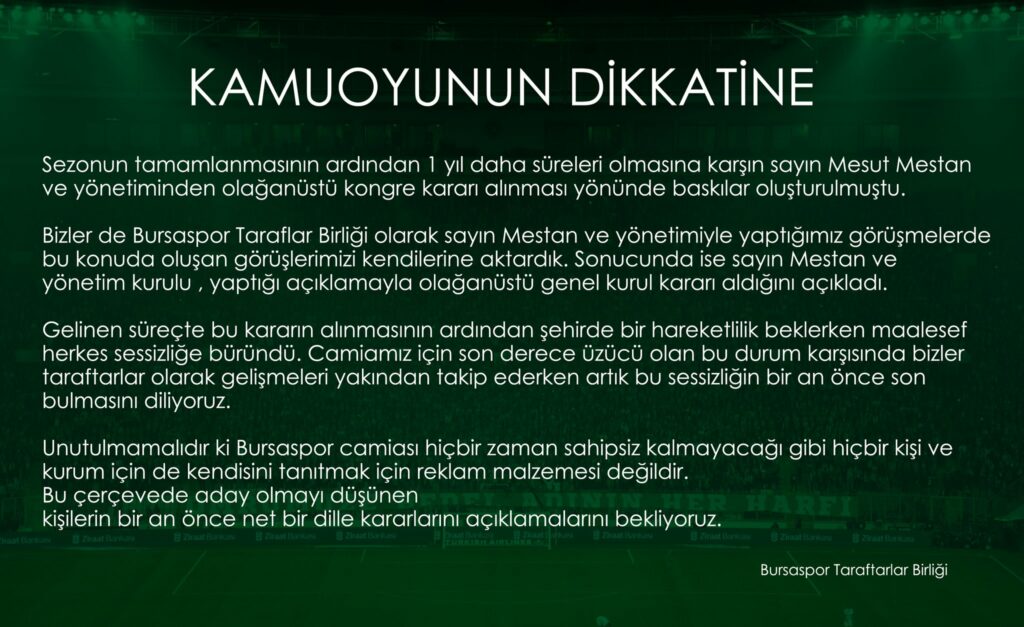 bu bildiriyi yapanlar asıl bursaspor üzerinden reklam yapıyor bi düşün bursasporun yaksından