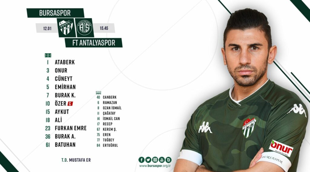 Bursaspor'un Antalyaspor ile Ziraat Türkiye Kupası son 16 turunda karşılaşacağı Antalyaspor maçının ilk 11'i belli oldu.