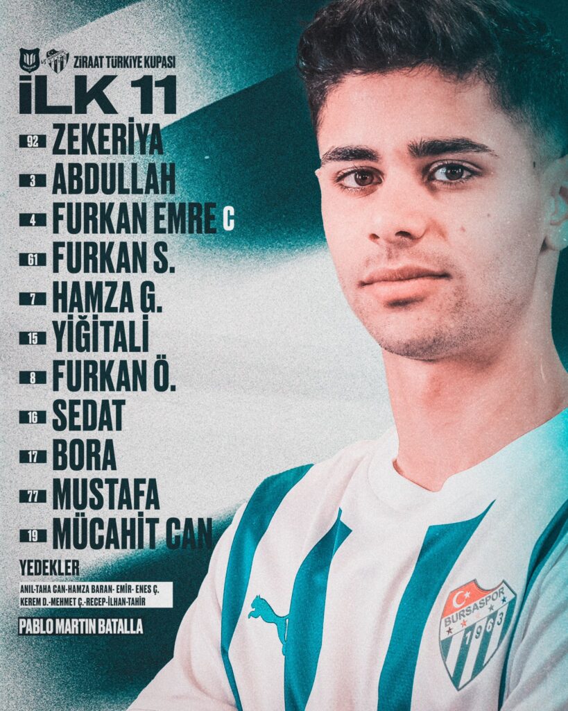 Bursaspor'un Uşakspor karşısında sahaya çıkacak ilk 11'i açıklandı.