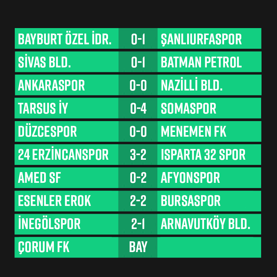 TFF 2. Lig'de 26. hafta geride kalırken Bursaspor haftayı 2-0 geriden gelip 2-2 sona eren Esenler Erokspor beraberliği ile kapatırken puanını 26'ya yükseltti.