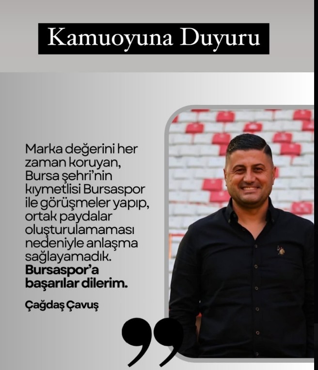 Bursaspor’un bir süredir görüştüğü bilinen Teknik Direktör Çağdaş Çavuş sosyal medya hesabından açıklamada bulundu.