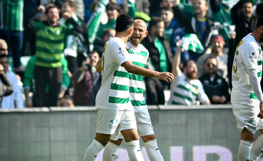 Bursaspor adına Mücahit Can Akçay ve Mehmet Yiğit fileleri sarsan oyuncular olurken yeşil-beyazlı takım ligde 18 hafta sonunda 46 puana yükseldi.