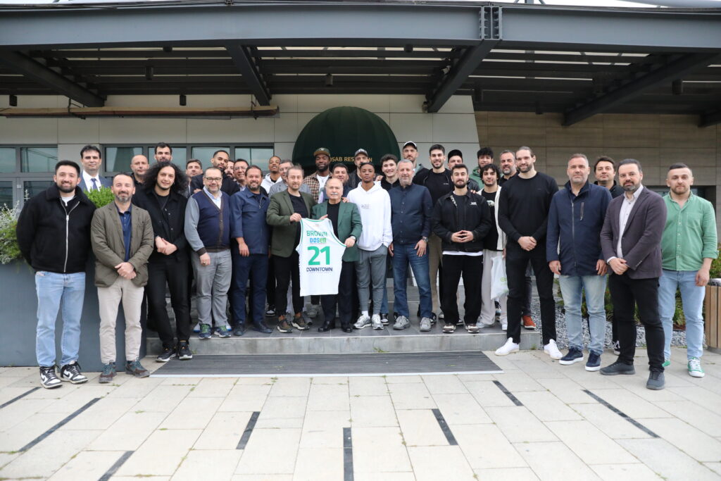 Daha sonra Bursasporlu basketbolcular ve teknik ekibin imzaladığı Şampiyonlar Ligi topu ve yeşil beyazlı forma Bursaspor Basketbol Başkanı Sezer Sezgin tarafından DOSAB Yönetim Kurulu Başkanı Levent Eski‘ye verildi.