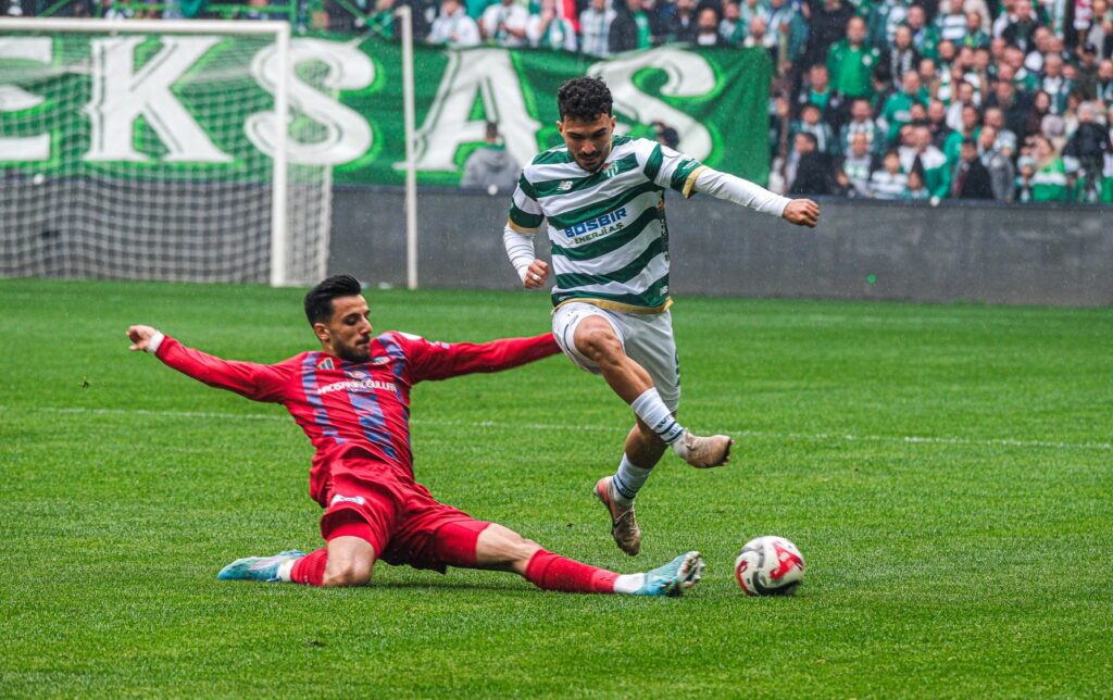25′ Yeşil-beyazlı ekip üst üste pozisyonlar bulmaya devam etti. Rahmetullah Berişbek’in ceza sahası dışından çektiği sert şut, direğin yanından az farkla dışarı gitti.