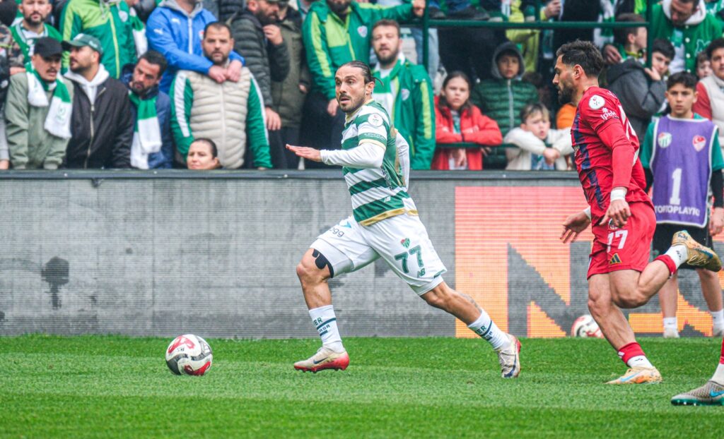 3′ Bursaspor sol kanattan Talha Yünkuş ile atağa kalktı. Talha’nın ortasında ceza sahası yayı üzerinde topla buluşan Sefa Narin’in şut denemesi isabetsiz oldu.