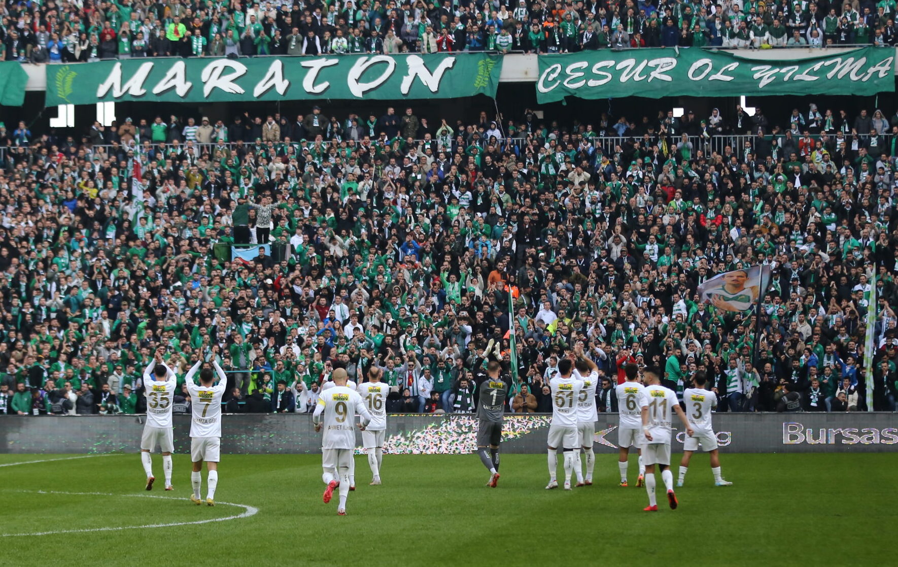 Bursaspor taraftarına fair-play ödülü veren TFF Başkanı Hacıosmanoğlu’un “Seyirciyi ve coşkuyu görüyorsunuz. Bursaspor’un yeri Süper Lig’dir. Layık olduğu yere de en kısa zamanda geleceğine inanıyoruz” sözleri de çok değerliydi.