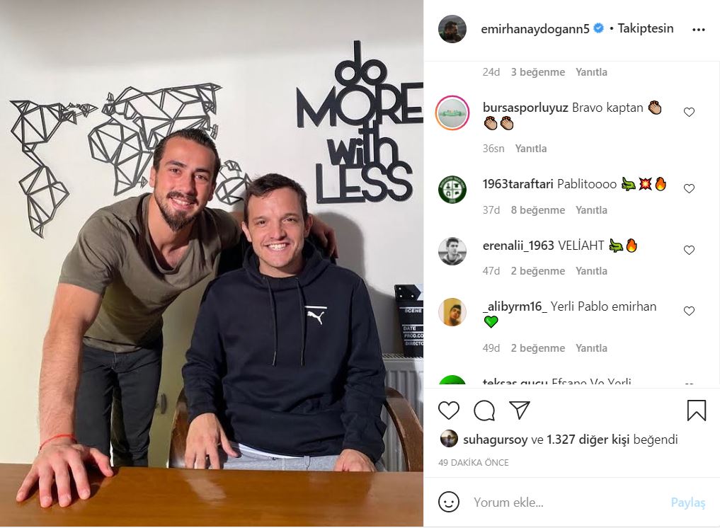 Bursa‘da bulunan Arjantinli efsane Pablo Martin Batalla ile buluşan Emirhan Aydoğan “Duruşuyla, karakteriyle, profesyonelliği ile benim gibi bir çok genç sporcuya örnek olan Pablo Martin Batalla ile birliketeydim. Kendisiyle sohbet etme şansını yakaladığım için çok mutluyum. Evine hoş geldin, hep bizimle ol.” paylaşımında bulundu.