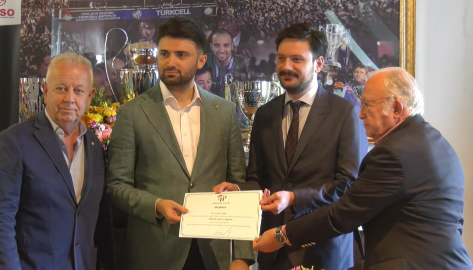 Enes Çelik Başkanlığındaki Bursaspor Yönetim Kurulu, Özlüce İbrahim Yazıcı Tesisleri'nde mazbatasını aldı.