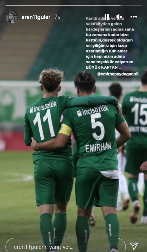 Bursaspor’un Vakıfköy patentli oyuncularından Eren Güler, takımdan ayrılan Emirhan Aydoğan’a teşekkür etti.