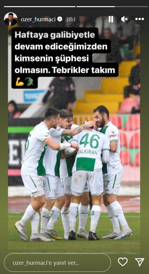 Özer Hurmacı paylaşımında “Haftaya galibiyetle devam edeceğimizden kimsenin şüphesi olmasın. Tebrikler takım” ifadelerini kullandı.