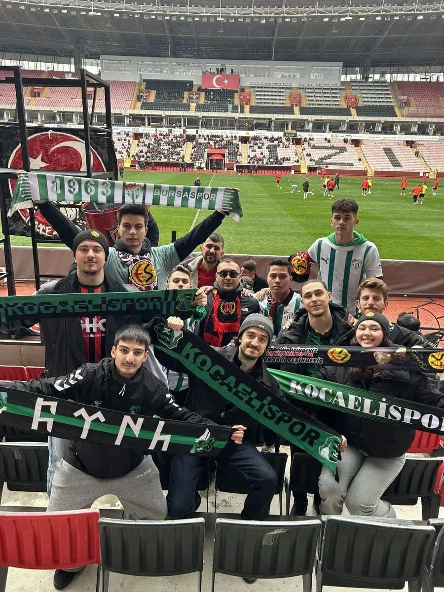 Şöyle ki Kocaelide yaşayan BÜYÜK BURSASPOR taraftarıyım, burada birçok maça gittim ve çok denedim dostluk konusunu, ancak şu var ki, Kocaeli taraftarı BURSASPORUMUZA karşı her maçta inanılmaz bir küfürlü tezahürat yapısı içinde, hatta maçı izlediğim Kocaelisporlu yakın dostlarıma da “BİZİM TRİBÜNDE HİÇBİR ANADOLU KULÜBÜNÜN KÖTÜ BİR ŞEKİLDE ADI BİLE ANILMAZ” şeklinde serzenişte bulundum, sağ olsunlar çok destek veriyorlar fakat çok azınlıkta. Sanırsam bizi çok ciddi rakip görüyorlar. Bunun için çok daha çalışmanız gerektiğini de ayrıca belirttim. Neyse umarım bu güzel davranışlar tüm tribünlere yayılır. Burada bunu en çok ben isterim. Hatırlatayım bu arada 1.igde iken buradaki 2-1 yenildiğimiz maçta kapalı tribündeydim, Duka ve arkadaşlar da geldi tribüne ve 10-15 dk sonra ortalık karıştı. Bu da unutulmaz sanırsam…
