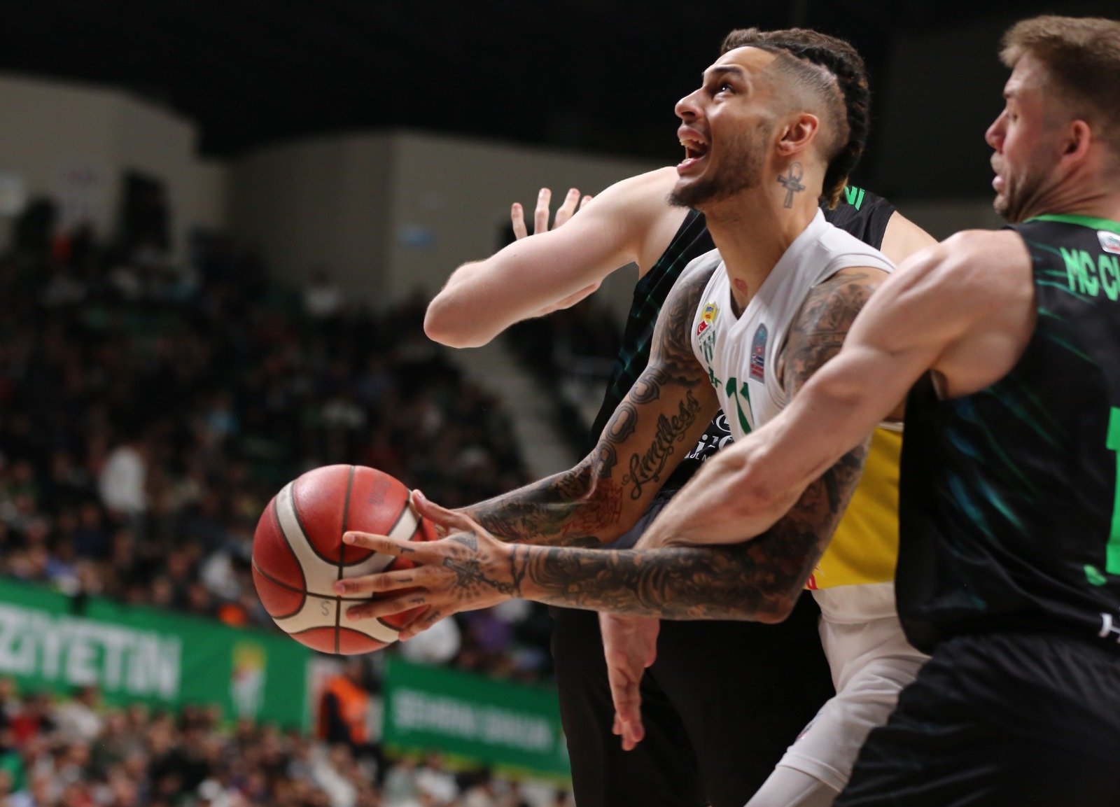 Türkiye Sigorta Erkekler Basketbol Süper Ligi’nin 6. Hafta erteleme karşı5laşmasında Frutti Extra Bursaspor, İstanbul temsilcisi Darüşşafaka’yı Nilüfer’deki Tofaş Salonu’nda konuk etti. Hafta arası olmasına rağmen 5 binin üzerinde yeşil beyazlı taraftar tribünleri doldurması dikkat çekti. Potanın Timsahı mücadeleyi 26 sayı farkla 97-71 yenerek Pınar Karşıyaka yenilgisini telafi etmiş oldu.