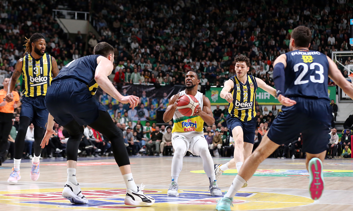 Frutti Extra Bursaspor Türkiye Sigorta Basketbol Süper Ligi’nde 15. haftasında lig lideri Fenerbahçe BEKO ile karşı karşıya gelirken sahadan 84-100 mağlup ayrıldı.