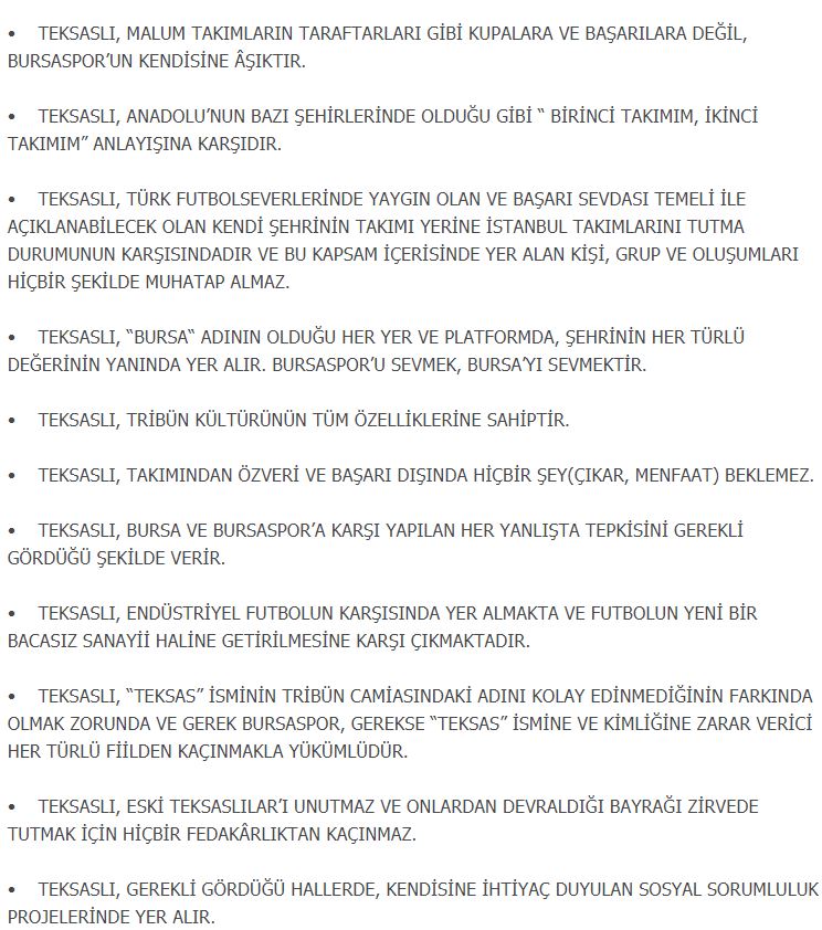 Yüreği BURSA ve BURSASPOR aşkı ile dolu dolu olan taraftarımızın maçta sadece ve sadece TAKIMIMIZA 90 DAKİKANIN SONUINA KADAR HEP DESTEK TAM DESTEK VERMESİNİ DİLİYORUM.