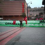 Zafer Plaza önünde toplanan yeşil-beyazlı taraftar, 18 Mart Çanakkale Zaferi için Ulucamii’ye kadar üzerinde “Düşmanda imkan vardı, Mehmetçikte iman. İşte buydu Çanakkale’yi geçilmez kılan” yazılı pankartla birlikte yürüdü.