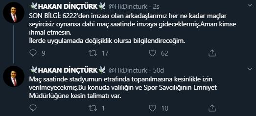 6222’den kaynaklı imzaların devam edeceği açıklanırken “Takıma uğurlama yapılmayacağı, maç saati herhangi bir toplu izleme organizasyonunun olmayacağı açıklandı.