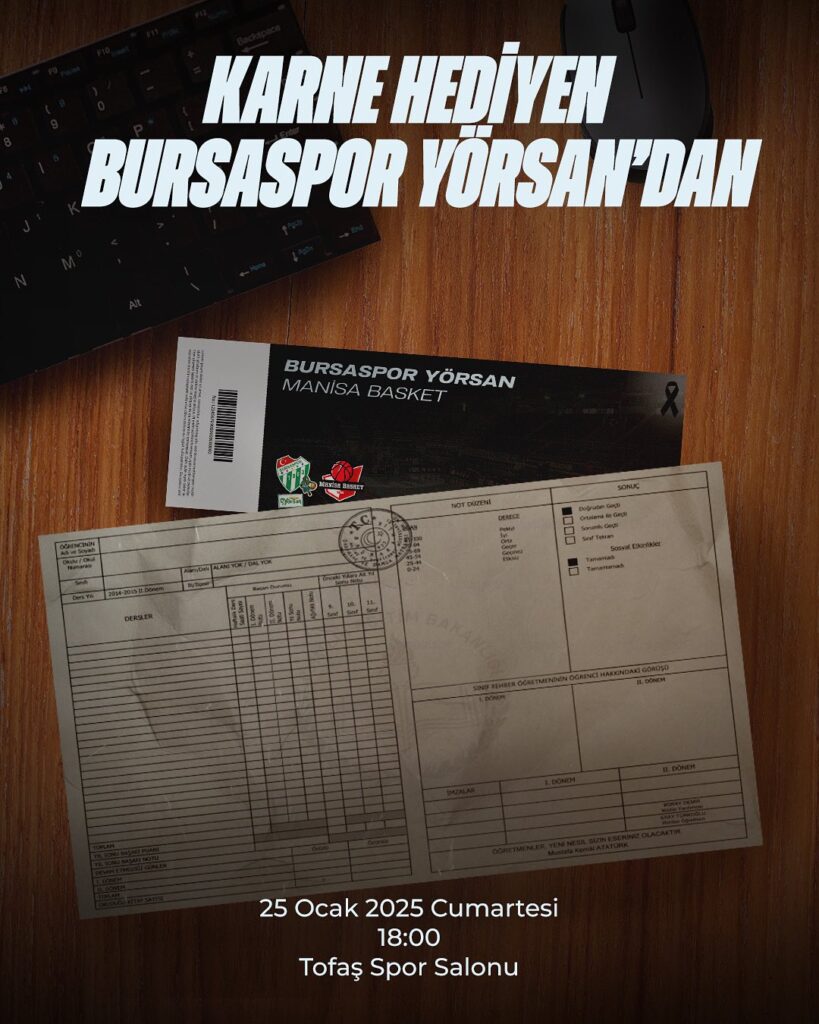 “Karne Hediyen Bursaspor Yörsan’dan” başlığıyla geçilen açıklamada bu hafta oynanacak Manisa Basket maçına karnesini getiren öğrencilerin ücretsiz olarak ağırlanacağı duyuruldu.