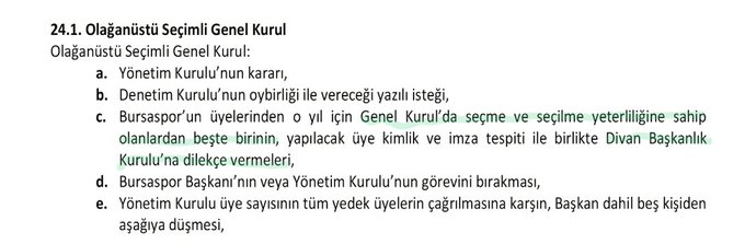 7. Yahu arkadaş tüzük maddesini koymuşlar başkana cevap diye millette yorum yapıyor okuyun maddesi imza 1/5 imza tespiti ve başvuru imza tespitini kim yapar noter net diğer türlü bişey olmaz imza toplamaktan sadece dava açılır dava red olur noter tasdikli olmassa imzalar nokta