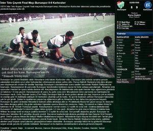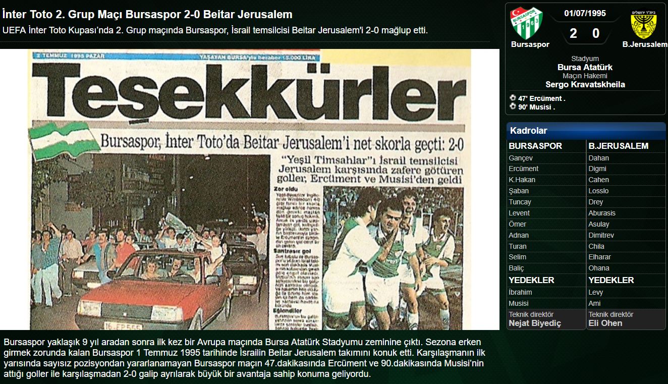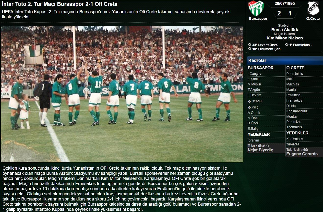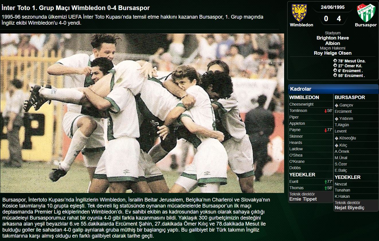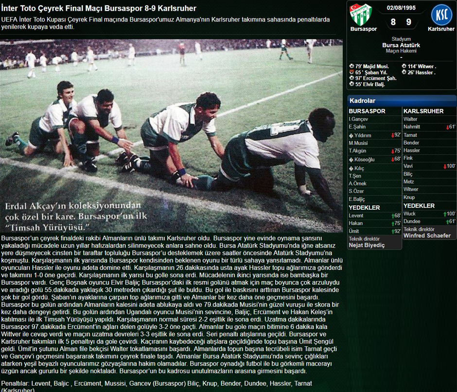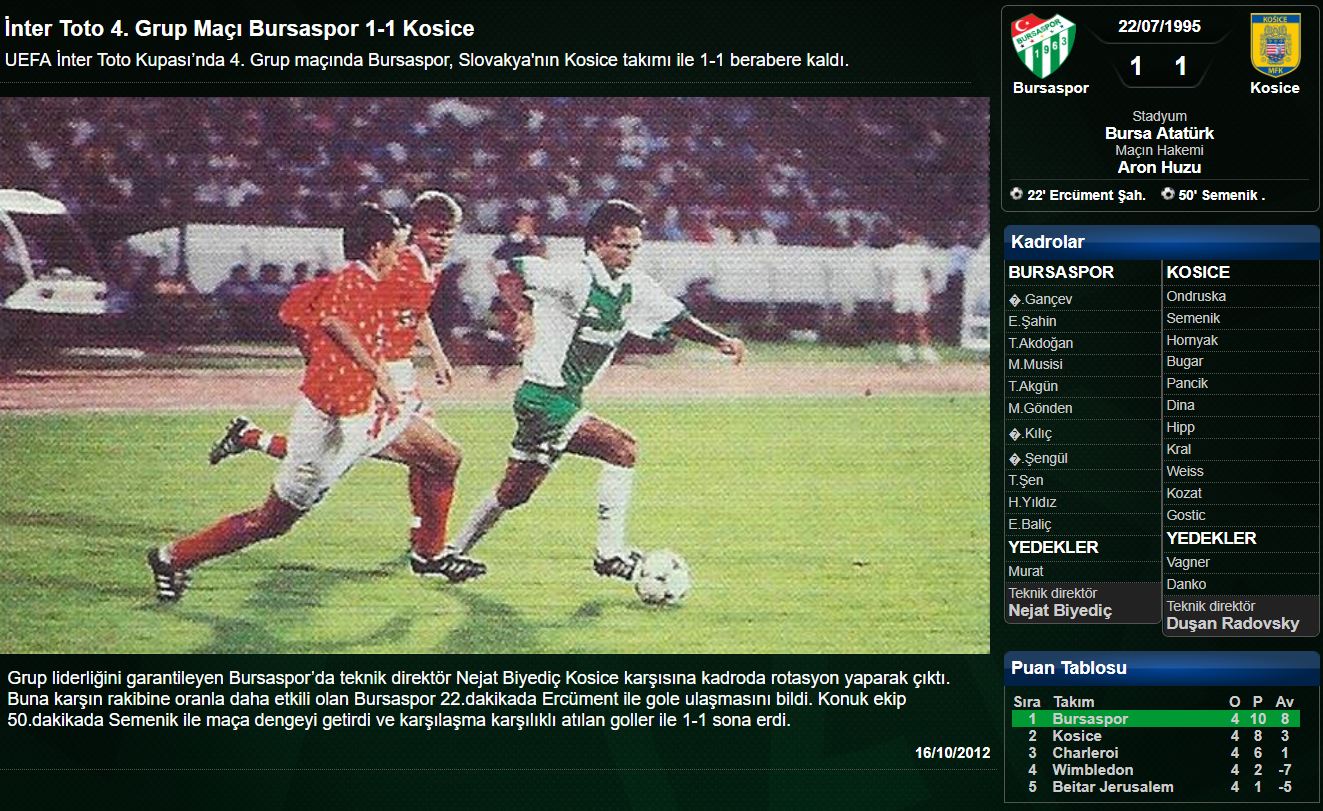 İntertoto efsane kadro ,hiç unutmadım o dize getirdiğimiz maçları son karsue maçına kadar bir ingiliz kulübüne 4 gol atarak Türkiyede o ünvanı taşıyoruz.Baliç,Ercüment,Musisi gibi layık olun bu taraftara, Hiç unutulur mu İmparator Nejat Biyediç …Türkiyenin takımı olmuştuk…Bir kez daha Bursaspor sen çok yaşa…
