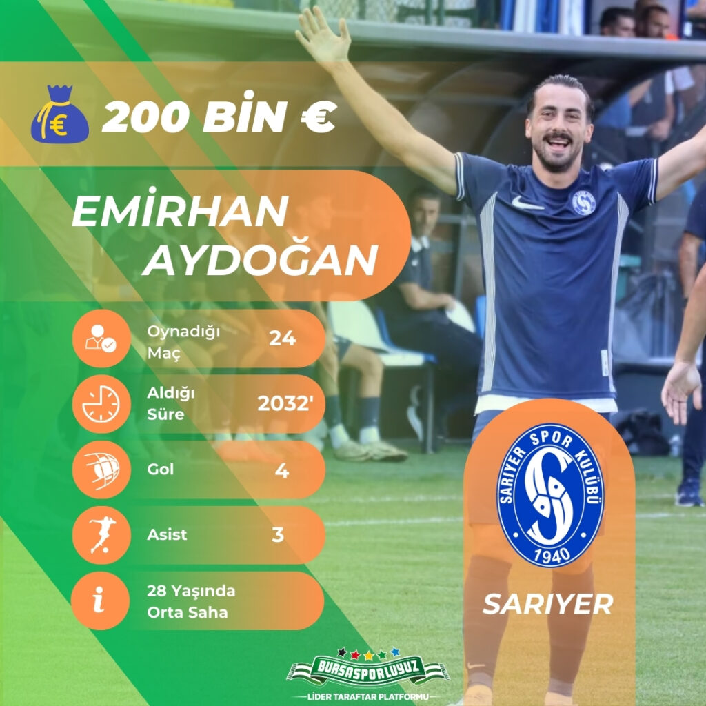 Devamı gelsin bursalı furbolcular listesinin guzel çalışma olmuş tebrikler. SADIK BAŞ var. süper ligde de tecrübesi var Hataysporla. Tuzlasporda başarılı bir grafiği vardı. defans orta saha çok yönlü. Turkiye kupasında galatasaraya musleraya golü vardı. Simdi kahramanmaraş istiklalde. seneye düşünülse iyi olur . OKAN EKENi de degerlendirelim bence lig golcüsü. iş yapar bizde. her sene bir üst ligde Bursasporum adım adım süper lige İNŞAALLAH.