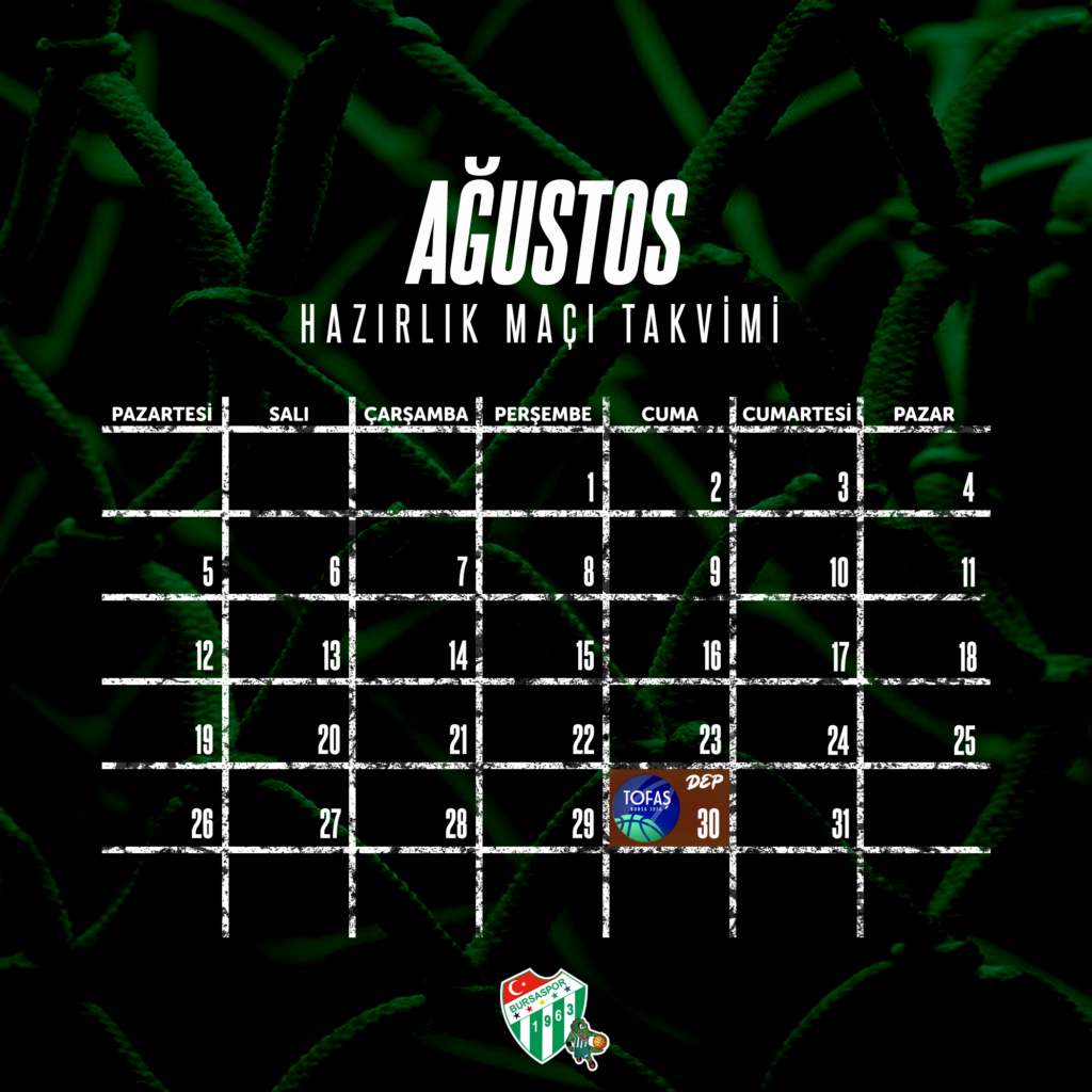 BURSASPOR BASKETBOL 2024-2025 SEZONU HAZIRLIK MAÇLARI PROGRAMI;