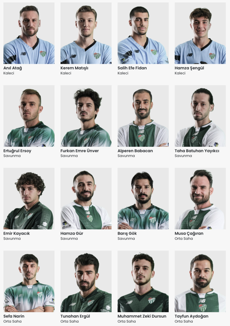 Nesine 2. Lig’de şampiyonluk hedefleyen Bursaspor, yeni sezonun kadrosunu resmi sitesinde yayınladı.