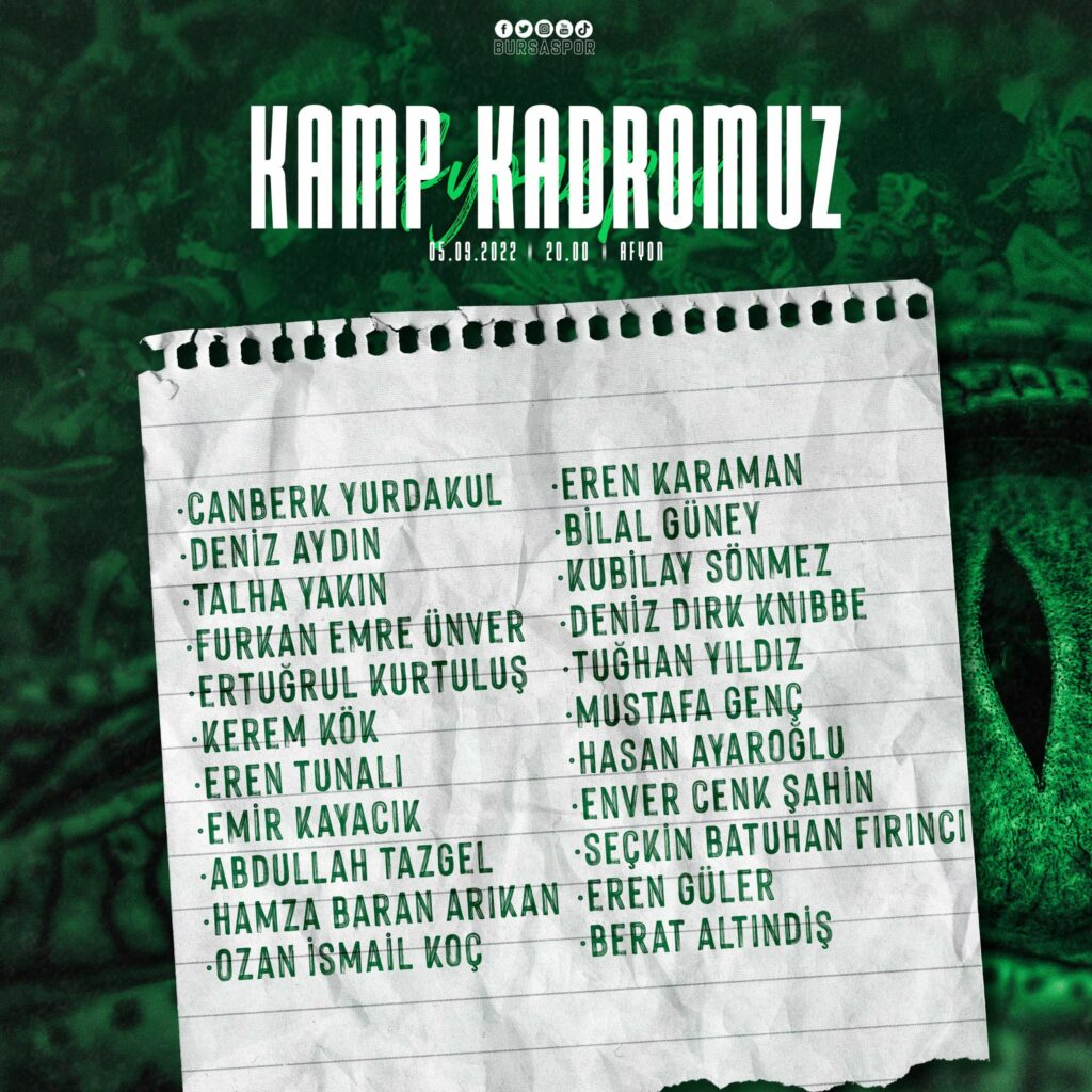 Afyonspor Maçı Kamp Kadromuz Belli oldu.