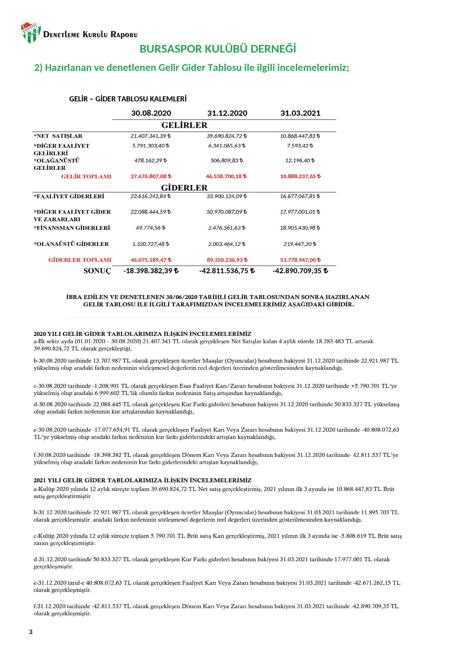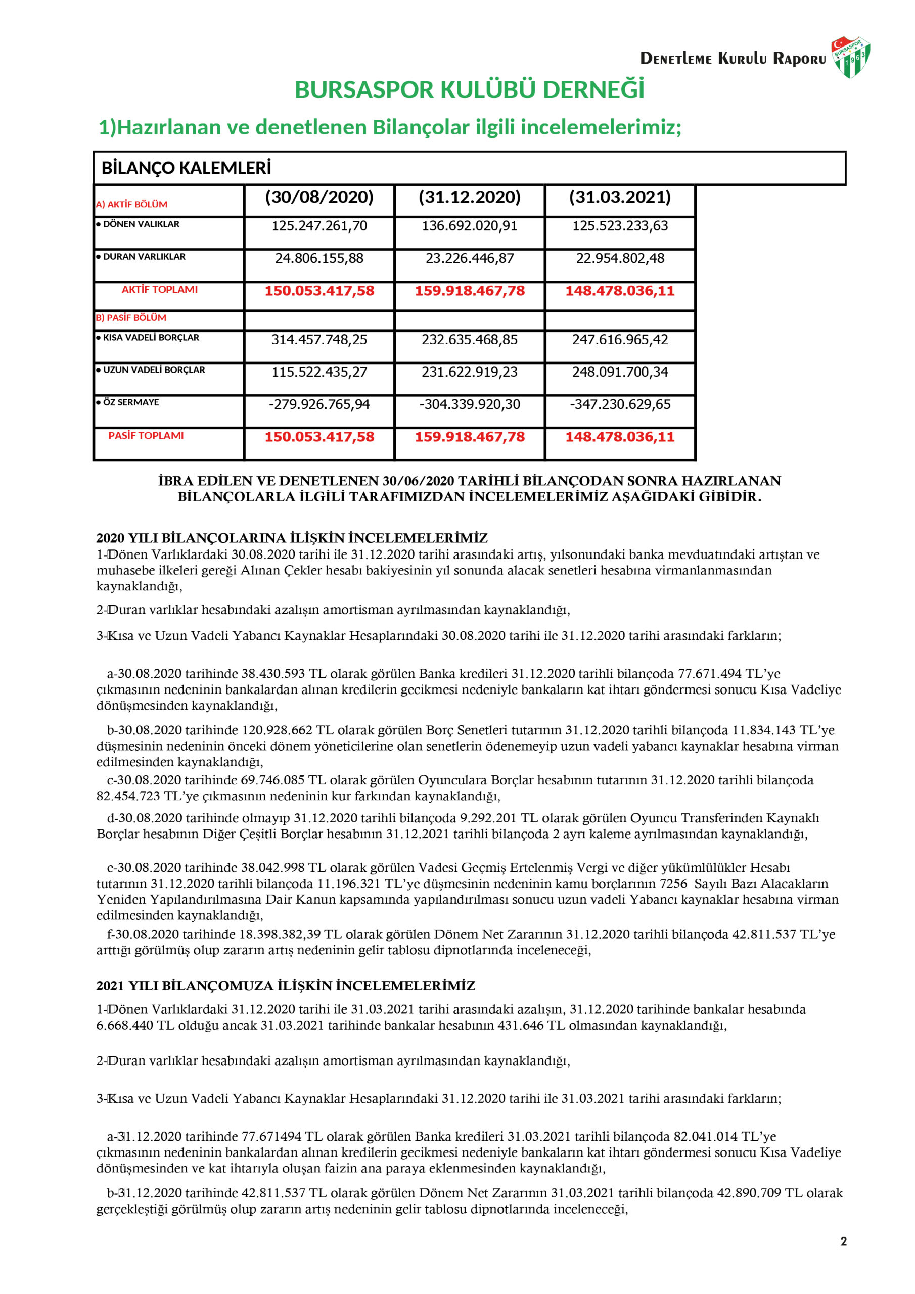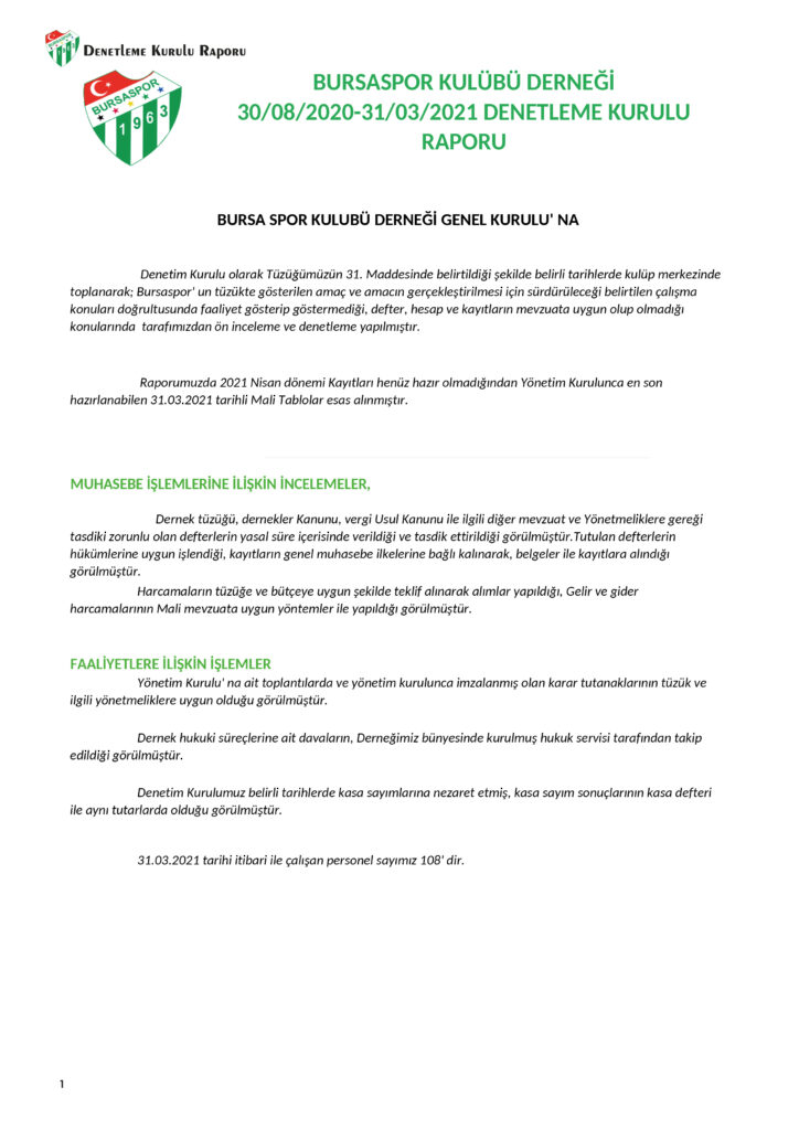 İşte Bursaspor’un Denetleme Kurulu raporu!