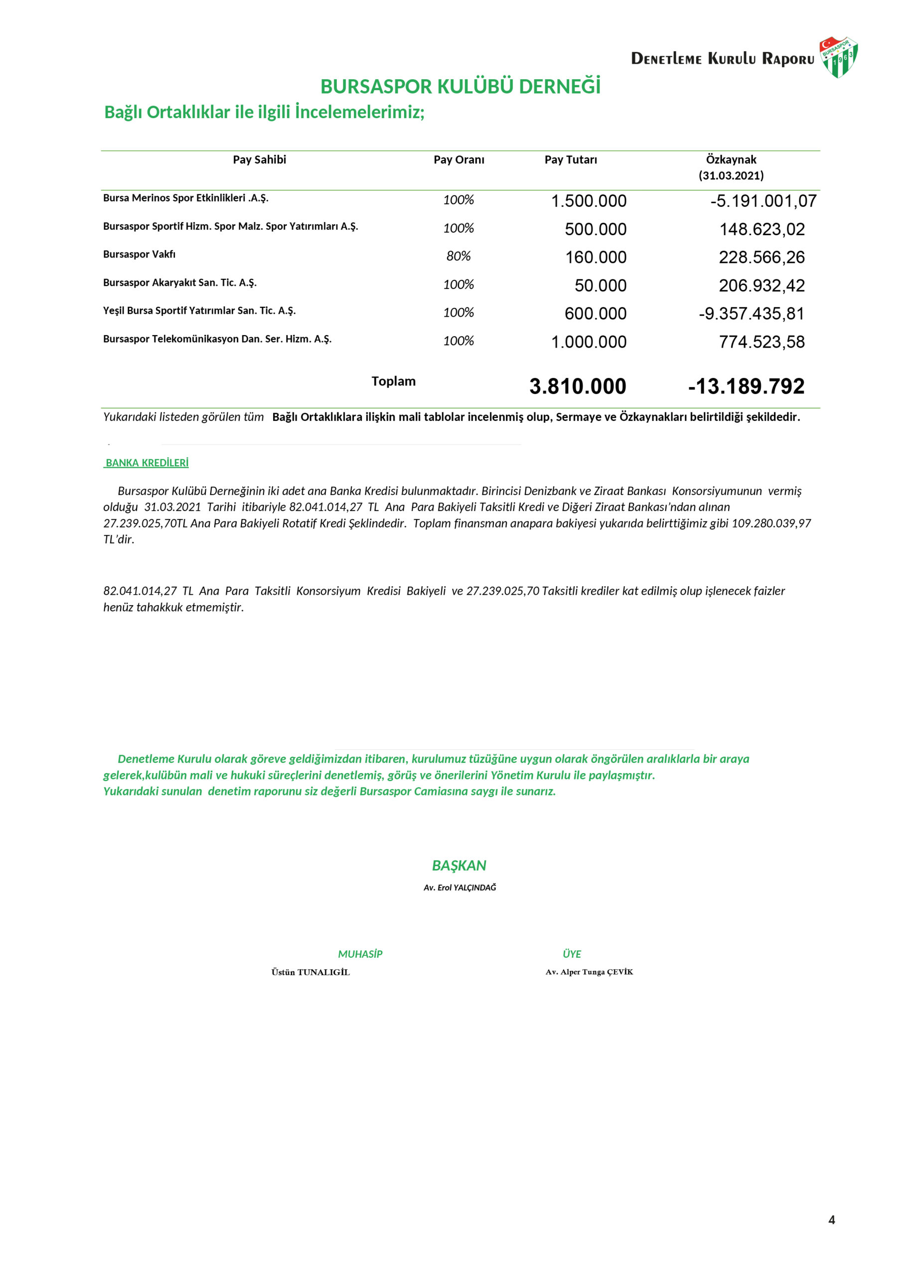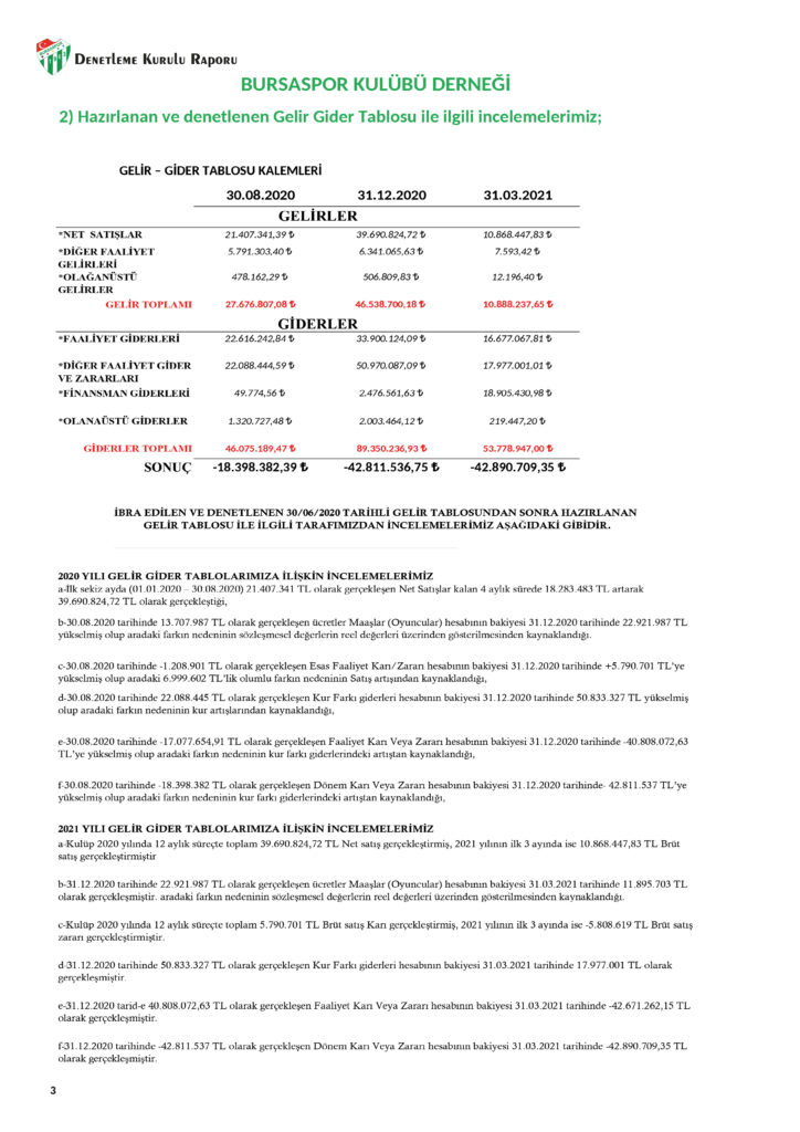 Bursaspor’un Bağımsız Kuruluş Tarafından Denetlenmesi Lazım – AŞ vs Olmadığı İçin Yapılmıyor- Ve Bu Rapor Biraz Helvacı Kağıdı Usulü Olsada 800 Milyon Borç Olduğunu Göstermiyor Hatta En Problemli Olan Borç Banka Borcu 82 Milyon TL Artı Konmamış Faiz v 27 Milyon TL Gözüküyor Yani Birileri Balon Şişirmiş ama burada önemli Birşey var Bursaspor TV vardı yani Bursaspor’un Bağımsız Denetleme Kanunlarına Tabi Olması Eğer Bu Kanuna Tabiysek Demek Son Beş Başkan Suç İşledi Bağımsız Denetim Yapmayarak Burada Devlet Bu Durumu İncelemesi Lazım!-